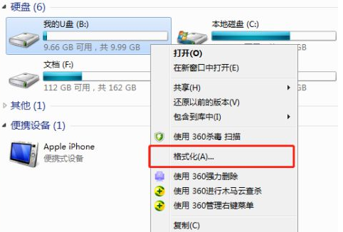 2.在u盤位置右鍵鼠標(biāo)-格式化