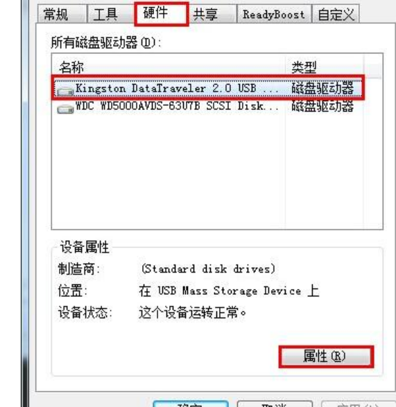 5、在打開的屬性窗口,切換到硬件項,點擊打開屬性(R)。
