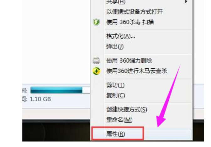 4、以上的解決方法沒有解決問題的用戶,可以繼續(xù)設置以下的步驟。進入“計算機”找到移動磁盤盤符,右鍵選擇屬性。