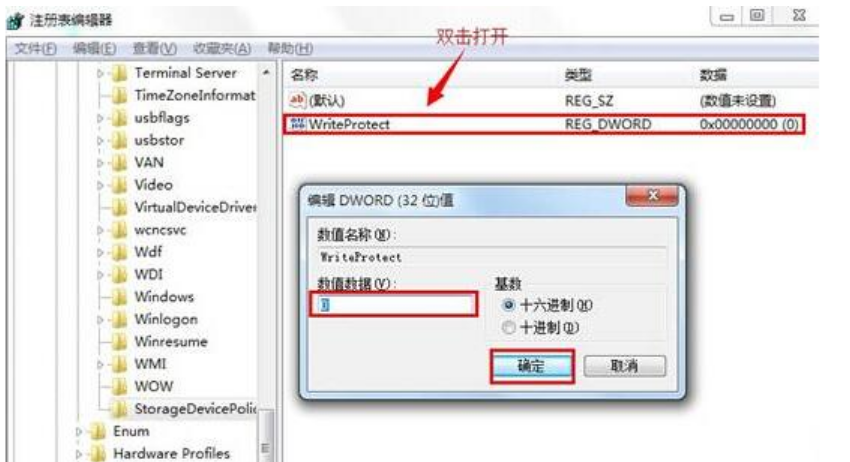3、在右側窗口中找到“ WriteProtect ”表,雙擊打開WriteProtect將數(shù)值數(shù)據(jù)改為“0”結束操作。