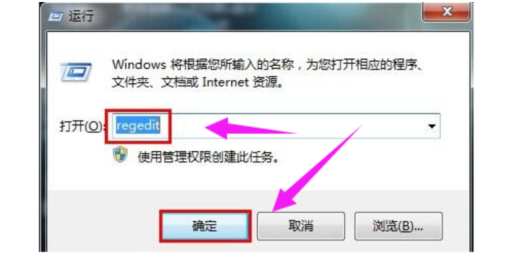 1、使用組合快捷鍵win鍵+r鍵打開運行窗口,輸入”regedit”回車確認。