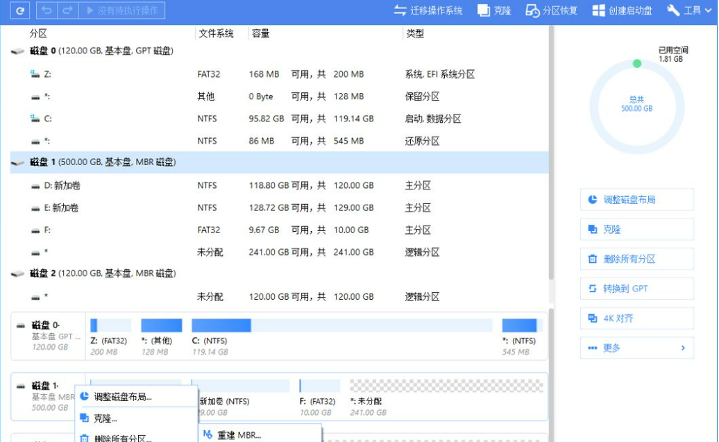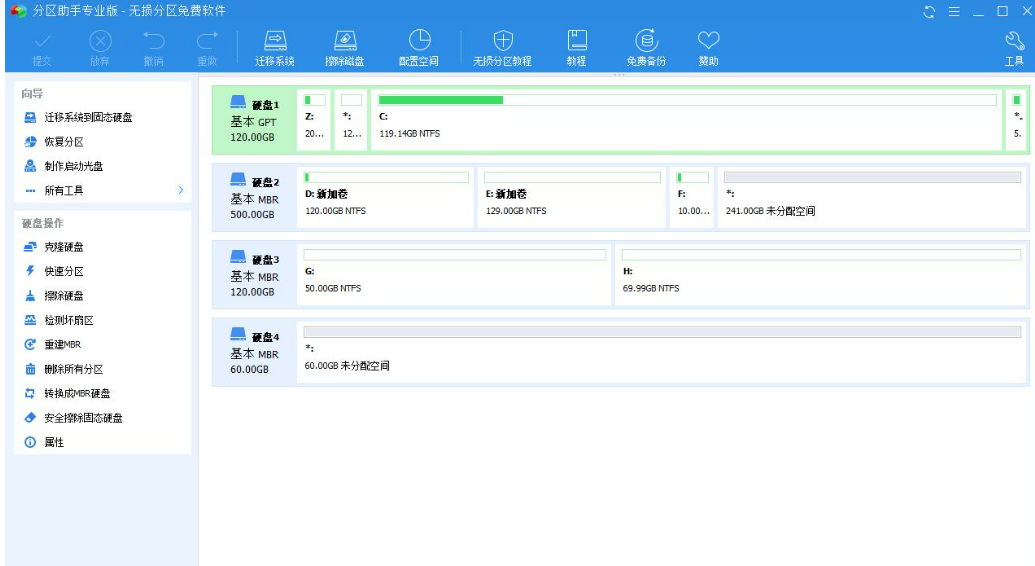 通過這款軟件,我們可以調(diào)整分區(qū)大小,創(chuàng)建、移動、合并、格式化、刪除分區(qū),克隆分區(qū)或磁盤,遷移操作系統(tǒng),恢復(fù)丟失分區(qū),實(shí)現(xiàn)磁盤、分區(qū)格式轉(zhuǎn)換等,操作簡單,新手都能輕松上手。