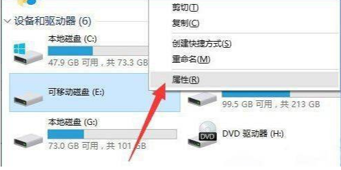 1.打開(kāi)【計(jì)算機(jī)】找到u盤(pán)右鍵點(diǎn)擊【屬性】。