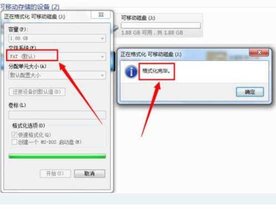 4、當(dāng)出現(xiàn)以上錯(cuò)誤提示時(shí),由于大面板壞道的產(chǎn)生,導(dǎo)致U盤(pán)可用容量減少,因此只能使用“Fat”文件系統(tǒng)來(lái)格式化U盤(pán)。如圖所示: