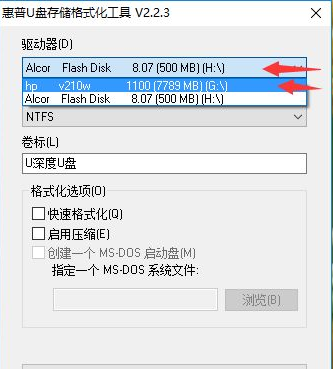 4.我們在打開的窗口的“驅(qū)動器”菜單中,選擇要格式化的u盤。