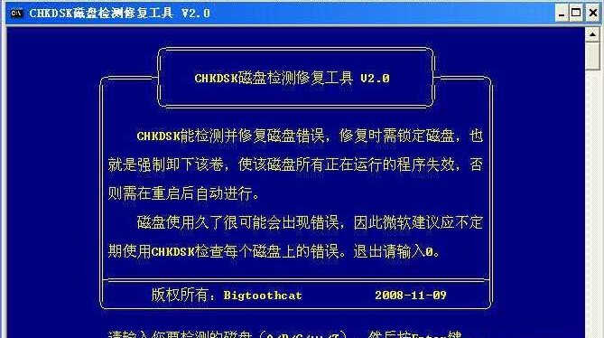 圖1.雙擊解壓得到的文件“CHKDSK磁盤(pán)修復(fù)工具V2.0.exe”,出現(xiàn)圖2: