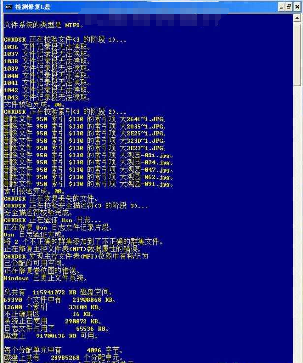 圖3.鍵入需要檢修的磁盤(pán)盤(pán)符J后,回車,出現(xiàn)圖4: