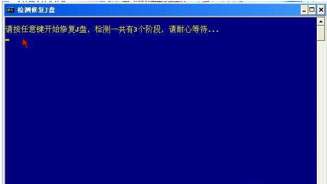 圖2.在光標(biāo)閃爍處鍵入需要檢測(cè)修復(fù)的磁盤(pán)盤(pán)符,如移動(dòng)磁盤(pán)盤(pán)符J ,如圖3: