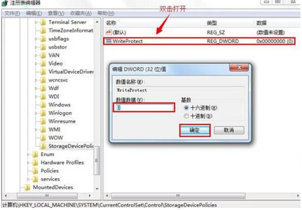 3、在右側(cè)窗口中找到“ WriteProtect ”表,雙擊打開WriteProtect將數(shù)值數(shù)據(jù)改為“0”結(jié)束操作。