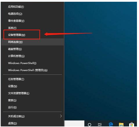 1、同時(shí)按下win10系統(tǒng)的【win+X】組合鍵,選擇【設(shè)備管理器】打開。