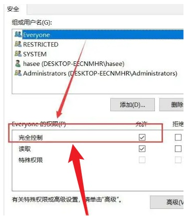 3、在everyone的權限下,設置允許“完全控制”。