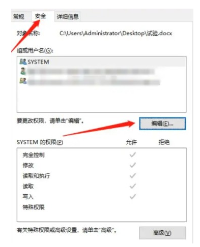 2、選擇“安全”,點擊“編輯”。