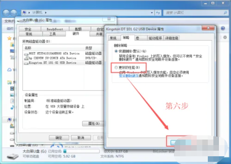 6、進(jìn)入策略界面以后,將“快速刪除”改為“更好的性能”。最后確定保存修改即可。