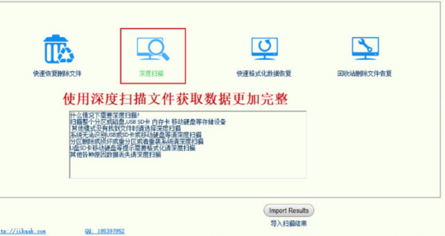 2、運(yùn)行軟件,點(diǎn)擊“深度掃描”。