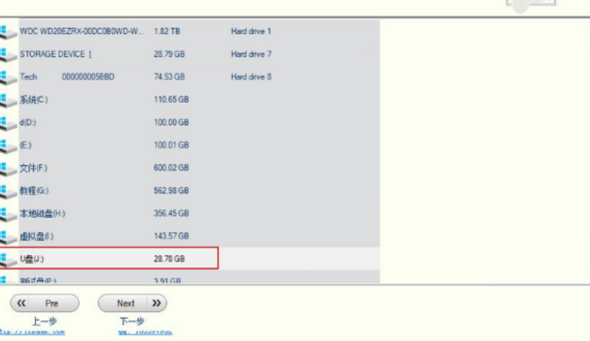 3、選擇要掃描的U盤或移動(dòng)硬盤。
