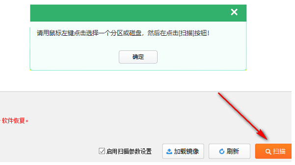 7、用鼠標(biāo)左鍵點(diǎn)擊選擇一個(gè)分區(qū)或磁盤(pán)。點(diǎn)擊掃描按鈕