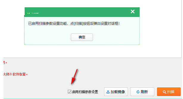 4、已啟用掃描參數(shù)設(shè)置功能,點(diǎn)掃描按鈕后彈出設(shè)置對(duì)話框!