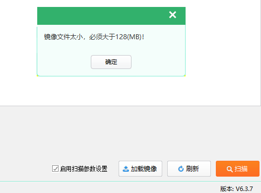 6、提示鏡像文件太小,必須大于128MB)!