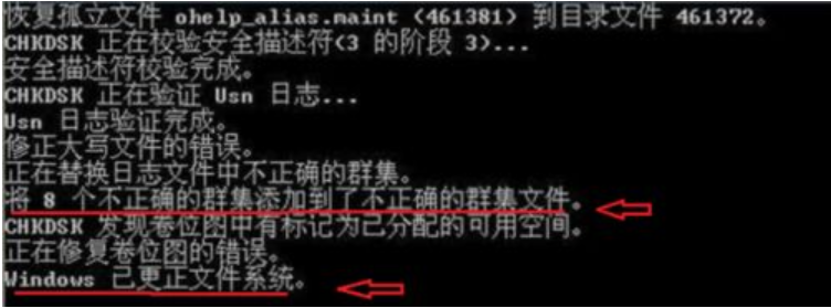 4.輸入“CHKDSK /f “盤符”:”,點(diǎn)擊回車鍵,即可。