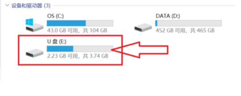 2.插入U(xiǎn)盤。查看盤符。