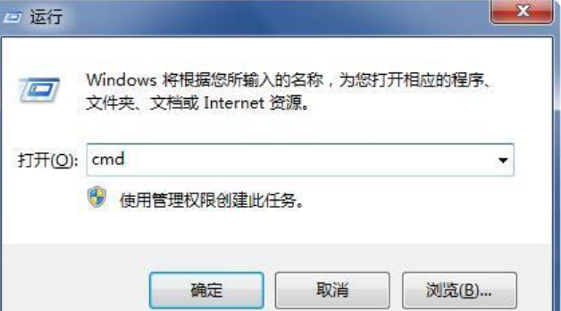 1、以win7系統(tǒng)為例進(jìn)行操作,首先我們插入需要分區(qū)的U盤,然后按快捷鍵Win+R打開運(yùn)行窗口,輸入cmd打開命令提示符;