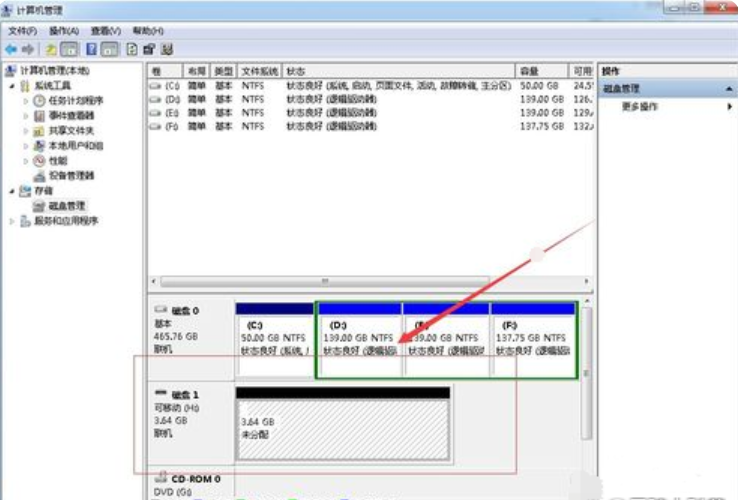 5、最后右擊計(jì)算機(jī)選擇管理—存儲(chǔ)—磁盤管理,然后找到未分配的可移動(dòng)硬盤,此時(shí)U盤就可像電腦中的硬盤進(jìn)行磁盤分區(qū)了。