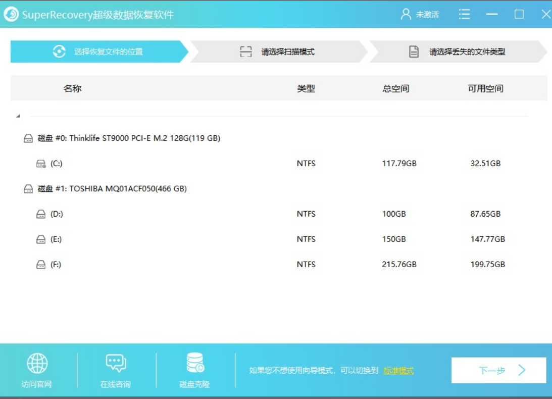 1、首先,下載“安裝Superrecovery”軟件,下載完成打開,選擇文件所在的位置。一般情況下U盤被格式化要恢復(fù)格式化U盤丟失的數(shù)據(jù),可選擇U盤的名稱,并點擊“下一步”。