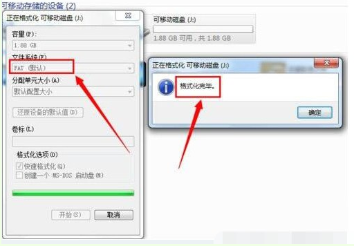 步驟四: 此時我們可以嘗試使用“Fat”文件系統(tǒng)來格式化U盤啦。