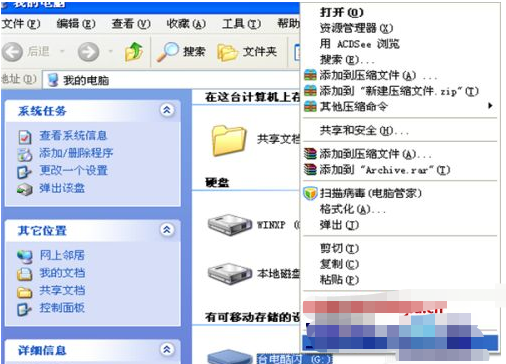 3、右鍵點(diǎn)擊你的U盤。會(huì)彈出一個(gè)下拉菜單。