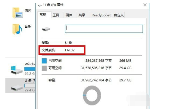 3、這個U盤的文件系統(tǒng)是:FAT32的。我們需要將它變成NTFS的。