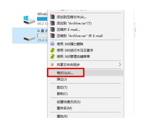 4、提前備份U盤中的數(shù)據(jù),然后點(diǎn)擊U盤的盤符,選擇格式化。