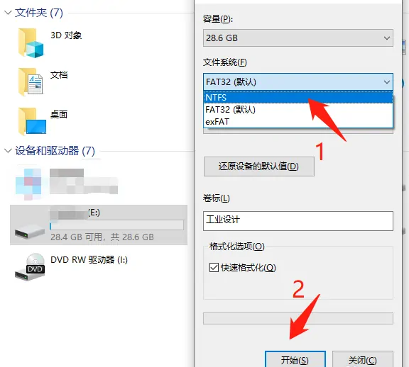 3、點(diǎn)擊“開始”,完成后就可以修改u盤文件系統(tǒng)格式了。