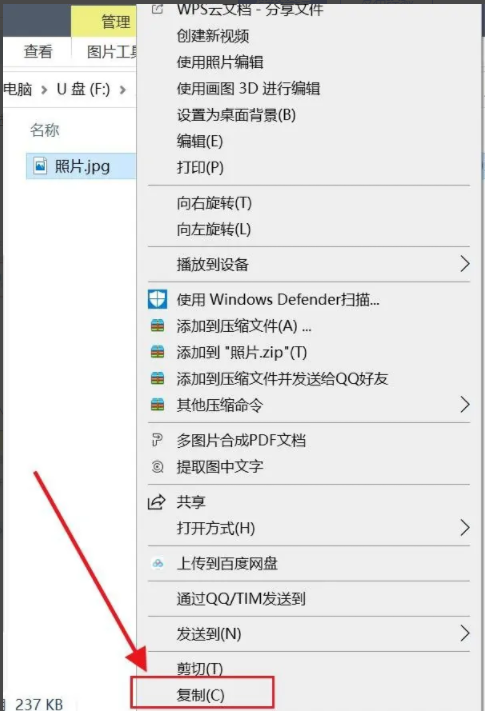 4、選擇要導(dǎo)入手機的【照片】右鍵【復(fù)制】。