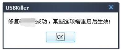 4、提示修復(fù)結(jié)束后,選擇重啟電腦即可解決U盤中毒無法運(yùn)行或者恢復(fù)數(shù)據(jù)等問題。