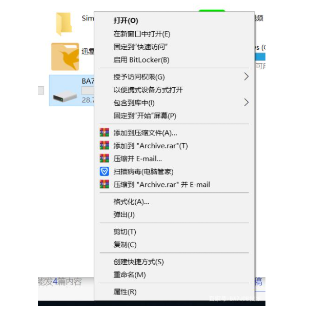 1、電腦上插入U盤,雙擊打開此電腦,右鍵選擇BA7JDB(E:)盤。