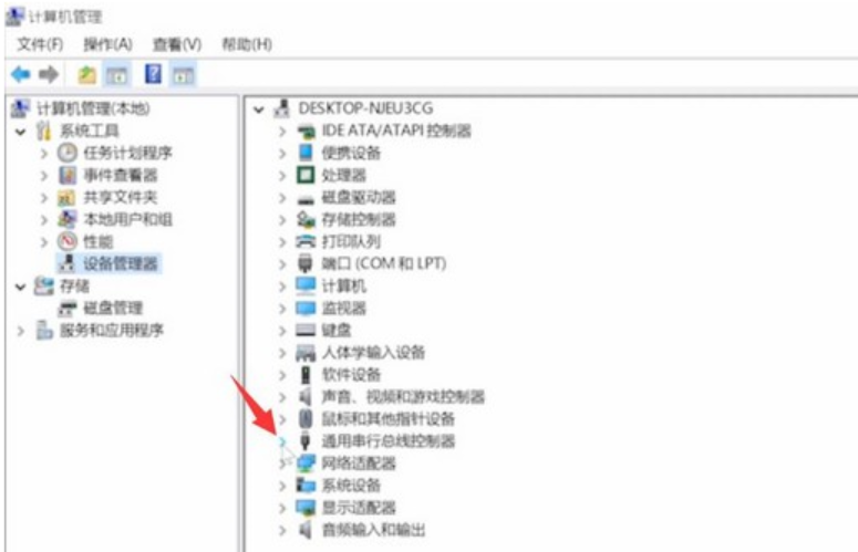 2、點(diǎn)擊左側(cè)的設(shè)備管理器,再點(diǎn)擊通用串行總線控制器。