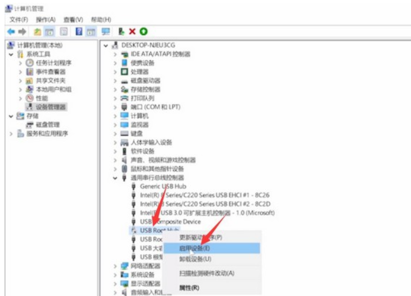 5、 再次鼠標(biāo)右鍵同一個(gè)設(shè)備選項(xiàng),點(diǎn)擊啟用設(shè)備,最后再重新插入U(xiǎn)盤就可以了。