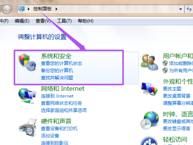 2、在‘控制面板’中點擊‘系統(tǒng)和安全’。