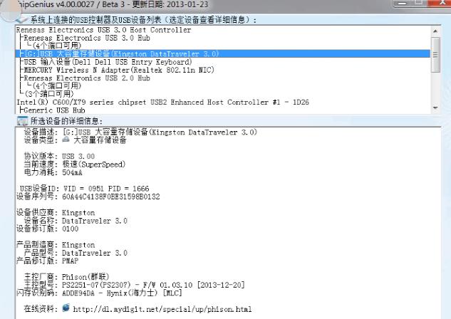 3、軟件版本:金士頓chipgenius軟件V4.0
