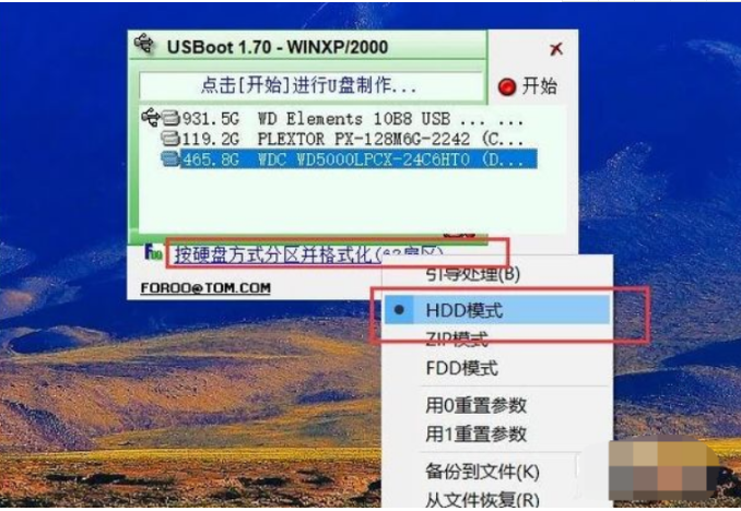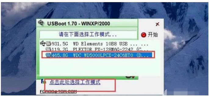 6、模式選擇好之后,點(diǎn)擊“開(kāi)始”,就可以執(zhí)行U盤的引導(dǎo)操作,引導(dǎo)操作完畢之后,即可在Windows系統(tǒng)中格式化U盤設(shè)備,U盤格式化完畢之后就可以恢復(fù)使用了。
