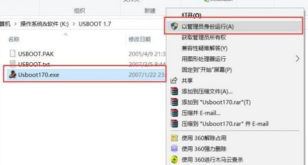 1、當(dāng)u盤損壞沒法格式化修復(fù)時,在電腦上下載好USBoot軟件,選中下載好的應(yīng)用程序鼠標(biāo)右鍵,選擇“以管理員身份運行”。