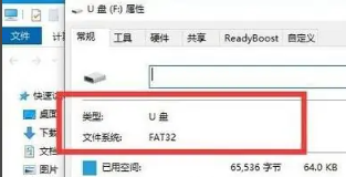 6、查看u盤屬性就能發(fā)現(xiàn)文件系統(tǒng)變成fat32了。