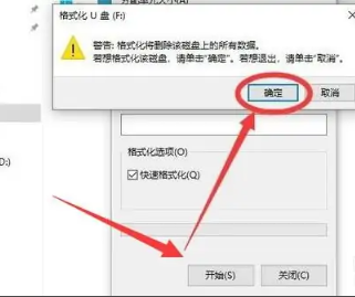 4、點(diǎn)擊下方“開始”如果有彈窗就點(diǎn)“確定”就能開始格式了。