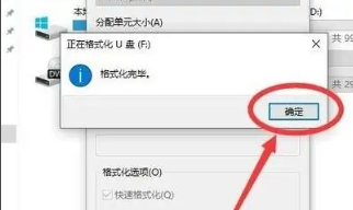 5、格式化完成后,雙擊“確定”再關(guān)閉窗口。