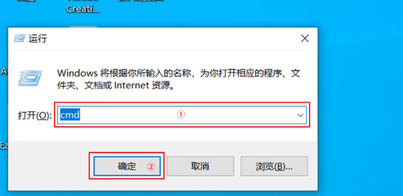 1、將亂碼的U盤(pán)接入電腦,按下win+r組合鍵打開(kāi)運(yùn)行框,輸入“cmd”,點(diǎn)擊確定。
