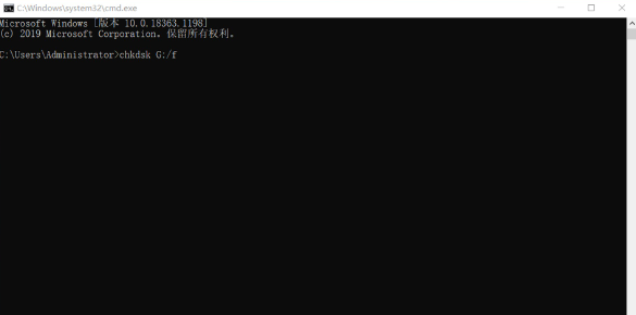 2、或打開(kāi)命令行窗口,輸入命令檢查、修復(fù)U盤(pán)文件系統(tǒng)中存在的錯(cuò)誤;