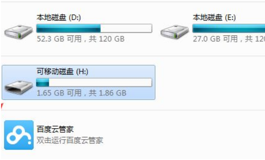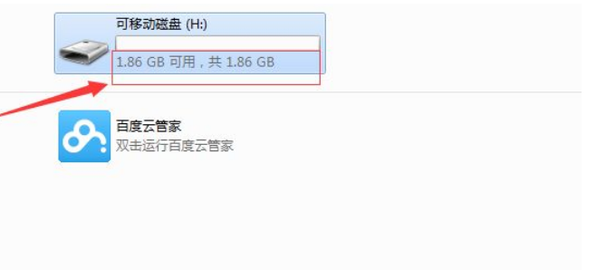 1.首先把u盤插到電腦usb接口,點擊打開計算機,進入我的電腦之后,將會在電腦中顯示多一個u盤的盤符。