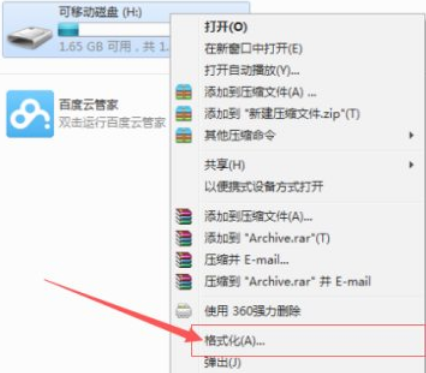 2.鼠標右鍵點擊u盤,點擊”格式化“。