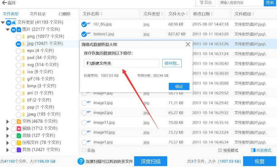 4.設(shè)置恢復(fù)文件的保存位置。