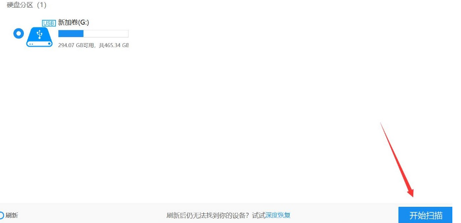 2.選擇原文件存儲位置,點擊U盤。然后點擊“開始掃描”。